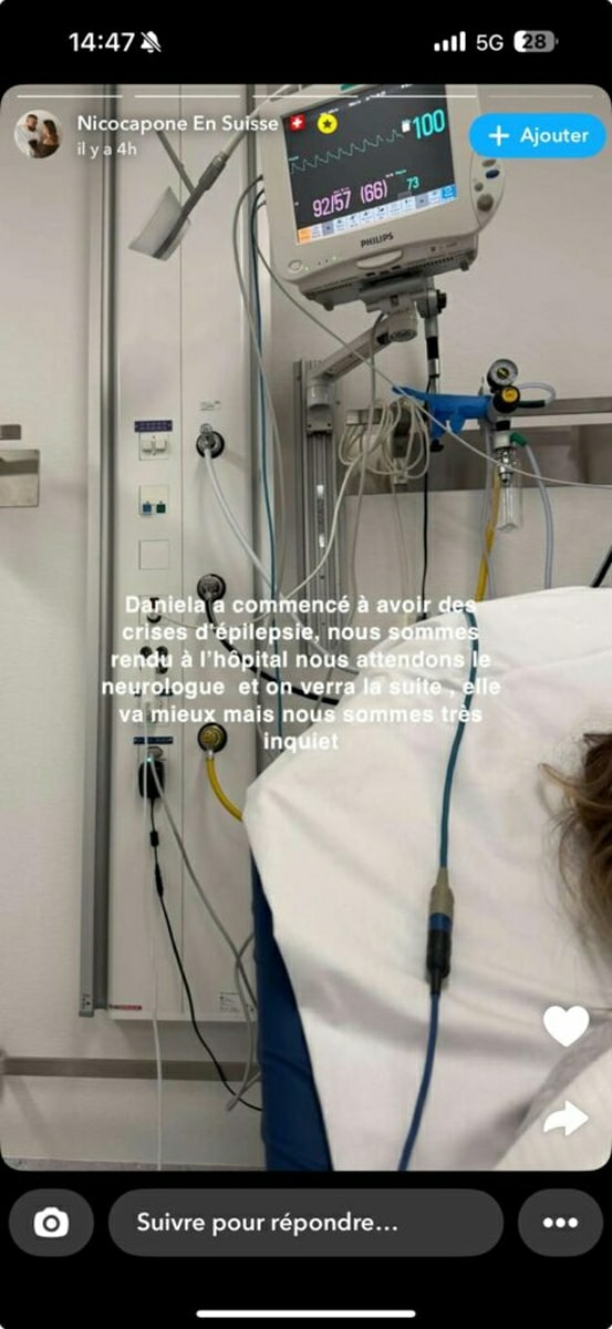 Sur Snapchat, le père de famille ne cache pas son anxiété face à la situation. « Daniela a commencé à avoir des crises d’épilepsie, nous nous sommes rendus à l’hôpital. Nous attendons le neurologue et on verra la suite, elle va mieux mais nous sommes très inquiets », dit-il. Deux jours plus tard, Daniela a enfin donné plus de détails sur ce qu’elle a vécu !