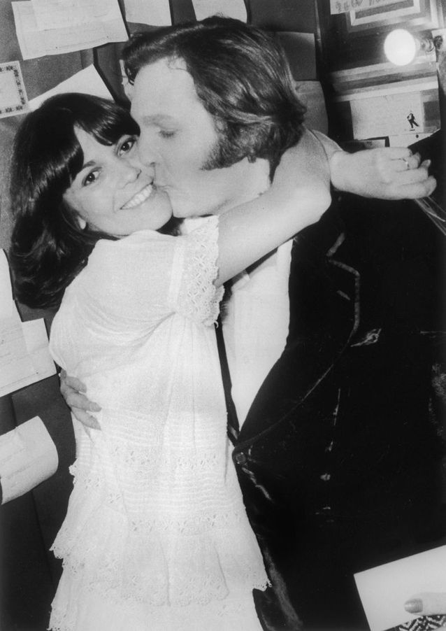 En 1975, Jean-Jacques Debout embrasse sa femme Chantal Goya après un concert à l’Olympia