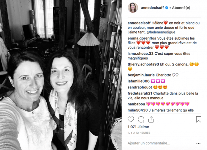 Cela va donc bientôt faire 10 ans qu’Hélène Médigue ne tourne plus pour Plus Belle La vie mais comme le montre la publication Instagram ci-dessous, elle a gardé contact avec son amie Anne Décis qui incarne toujours le rôle de Luna dans la série.