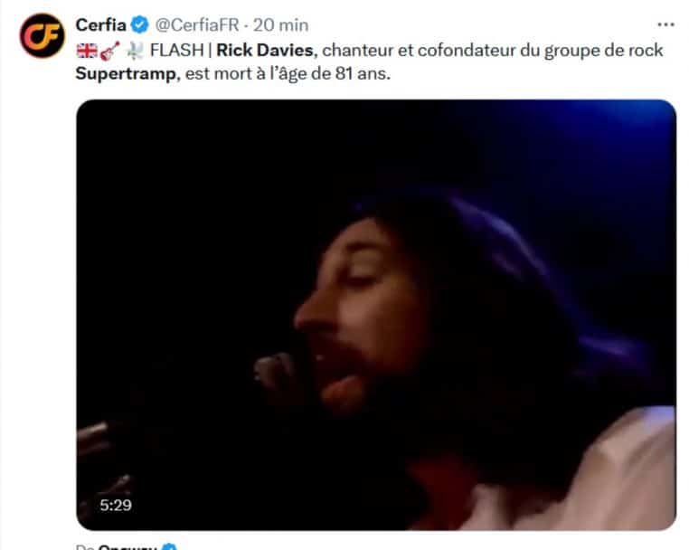 Sur leur compte officiel, le groupe Supertramp a rendu un magnifique hommage au défunt. « Nous avons eu le privilège de le connaître et de jouer avec lui pendant plus de 50 ans. Nous présentons nos sincères condoléances à Sue Davies (épouse de Davies et manager du groupe). » En une phrase, ils ont réussi à résumer les nombreuses facettes de ce musicien pas comme les autres. « Il était la voix et le pianiste derrière les chansons les plus emblématiques de Supertramp, laissant une marque indélébile dans l’histoire de la musique rock » !