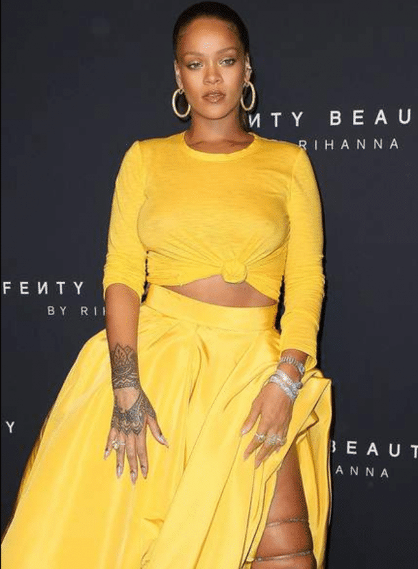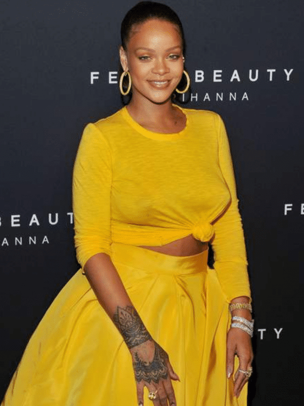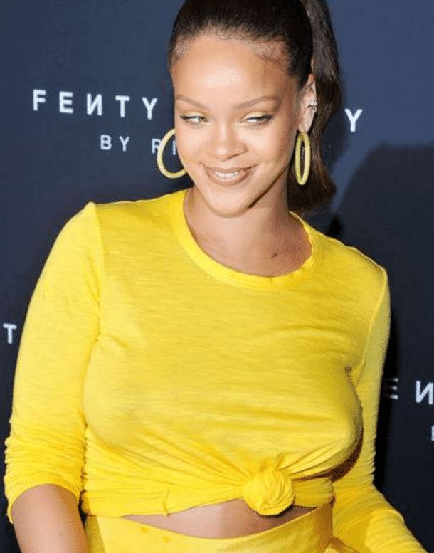 Et la tenue de la belle Riri a fait sensation. En effet, tout de jaune vêtue, Rihanna a bouleversé la foule avec son tee shirt noué sur le ventre et sa jupe jaune taille haute. Mais ce qui a surtout beaucoup épaté l’assemblée, c’est que Rihanna ne portait pas de soutien-gorge et que le jaune de son tee-shirt laissait entrevoir sa poitrine et son piercing au sein droit.