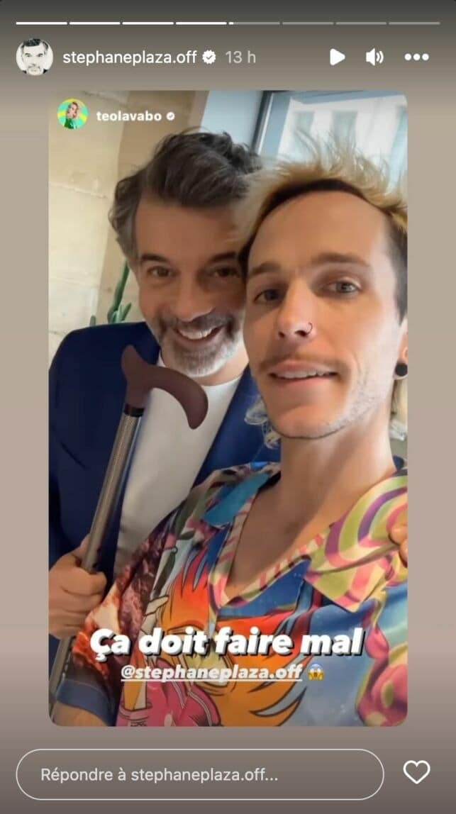 Contre toute attente, Stéphane Plaza est apparu avec un nouvel accessoire. « Qu’est ce que tu fais avec cette canne ? », lui a demandé le chanteur. Ce à quoi le présentateur de Chasseurs d’appart’ a répondu, non sans humour : « Je me suis cassé le pied. Comme j’ai douze points sur le pied, maintenant je suis canné ». Et de poursuivre : « Je suis passé dans un tabouret qui n’était pas un tabouret. C’était du verre ».