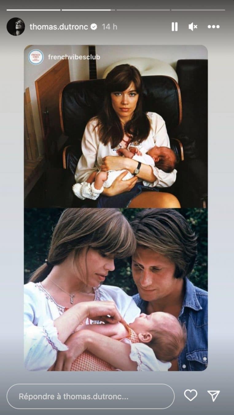 Quelques jours après sa naissance, les caméras de télévision s’invitent à la maternité. D’humour taquine, Jacques Dutronc estime que mis à part l’arrêt partiel du cigare, il ne compte pas tout « transformer » pour ce petit être. De son côté, Françoise Hardy souhaite le préserver des retombées de sa notoriété.