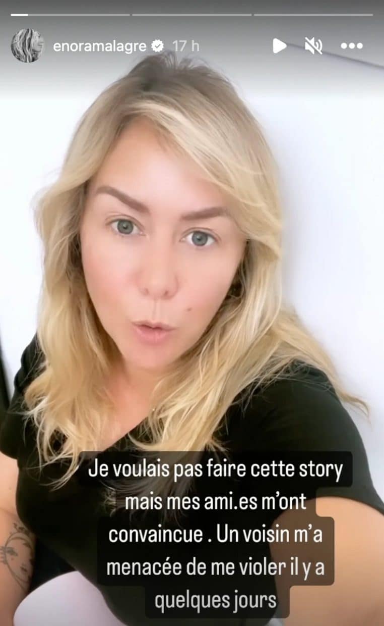 « Je me suis fait agresser par un voisin qui a vue directe sur ma terrasse et sur ce qui se passe chez moi malheureusement » , a commencé Enora Malagré.