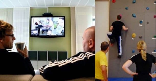 Ici, les activités ne manquent pas. Lorsqu’on ne regarde pas la télé, on peut s’entraîner à escalader les murs de la prison grâce à ce mur d’escalade mis à disposition des détenus.