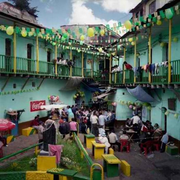La prison a l’air festive : fanions, ballons et parasols colorés, même en prison on fait la fête en Amérique latine.