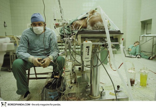 7) Un chirurgien cardiaque, après une opération de 23 heures.