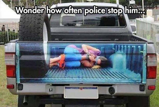 Avec un tel dessin à l’arrière du pick-up, pas étonnant de se faire arrêter !