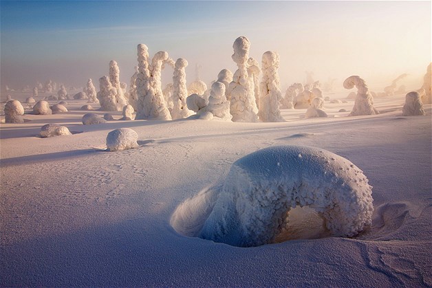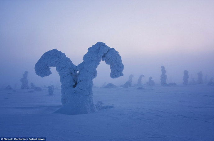 Enfin, cap sur la Finlande où Niccolo Bonfandi a pris cette série de clichés dans le cadre du projet Wildvisions Nature Photographie. Sous ces formes presque humaines se cache en fait une forêt de Laponie. Par -40°C, les arbres, recouverts de givre ressemblent à des silhouettes surgissant des étendues glacées, « Les sentinelles de l’arctique », c’est le nom que le photographe italien leur a donné.