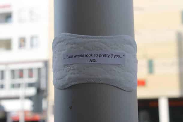 C’est le message que veut faire passer Elone, une féministe engagée qui vit à Karsruhe, en Allemagne. Elle diffuse des messages simples mais percutants sur l’inégalité des sexes et la culture du viol sur des serviettes hygiéniques qu’elle appose dans la rue. Elle a commencé à véhiculer ces messages le 8 Mars à l’occasion de la journée de la femme et depuis, ils sont massivement relayés sur les réseaux sociaux.