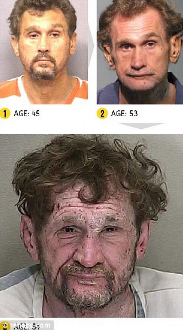 Une série de clichés affolants prouve une fois de plus les dégâts irréversibles que peuvent causer les drogues sur le corps. Ces photos ont été prises par les autorités lors des arrestations à répétition des consommateurs de drogue. Souvent arrêtés pour des délits de conduite ou de comportement, il est possible de comparer le visage de ces consommateurs après quelques années. De nombreux consommateurs de crystal meth (méthamphétamines) attrapent des boutons ou des croutes, notamment car ils se grattent la peau du visage. Les acides des différentes drogues, notamment la cocaïne attaquent l’émail des dents, jusqu’à ce que celles-ci tombent ou soient déchaussées, à cause de la sensibilité des gencives. La perte de poids est également un problème chez les grands consommateurs.