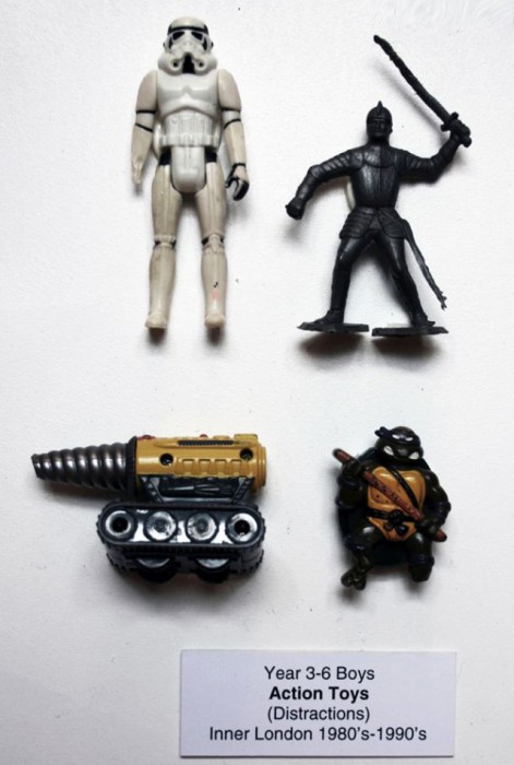 En plus d’être un artiste, Guy Tarrant est enseignant. Pour son projet, il a récupéré tous les objets confisqués aux élèves depuis 30 ans dans 150 écoles d’Angleterre. Des armes, des bouts de papiers, des poupées, des gadgets électroniques tout y passe !