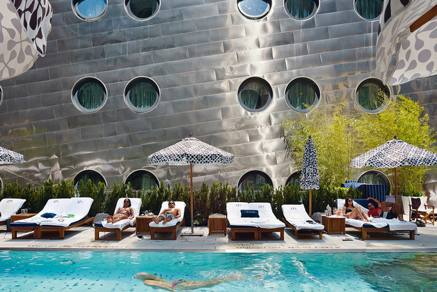 En plein cœur de New York, cet hôtel ambiance sixties fait d’acier reflète l’urbanisme new-yorkais avec une éclatante lumière