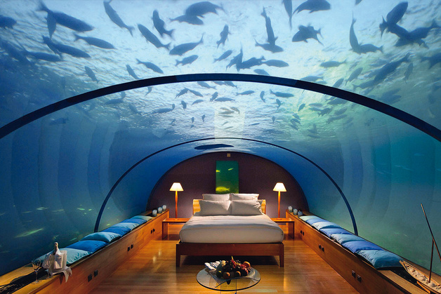 Dormir au beau milieu de l’océan rempli de dauphins et requins, ça vous tente ? C’est ce que propose ce superbe hôtel-restaurant aux Maldives. Expérience unique garantie !