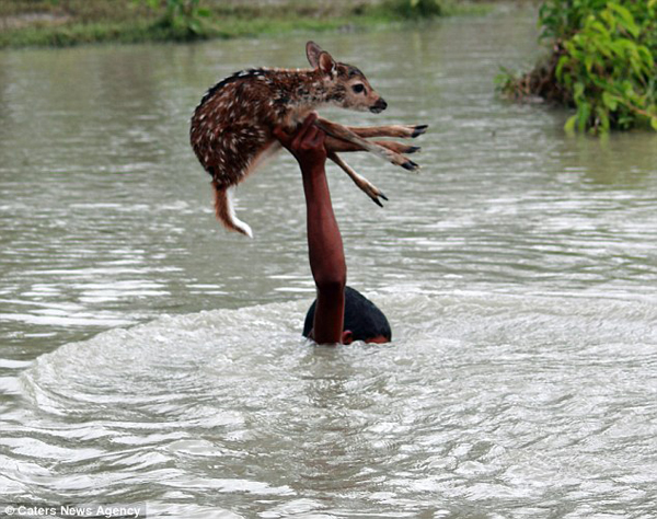 Un jeune garçon, répondant au nom de Belal, passait à côté d’un lieu complètement submergé lorsqu’il a remarqué la présence d’un petit faon qui avait eu le malheur de se laisser emporter par le courant. Sans se poser la moindre question, le jeune garçon s’est jeté à l’eau afin de venir au secours de ce petit animal inoffensif qui était en danger de mort.