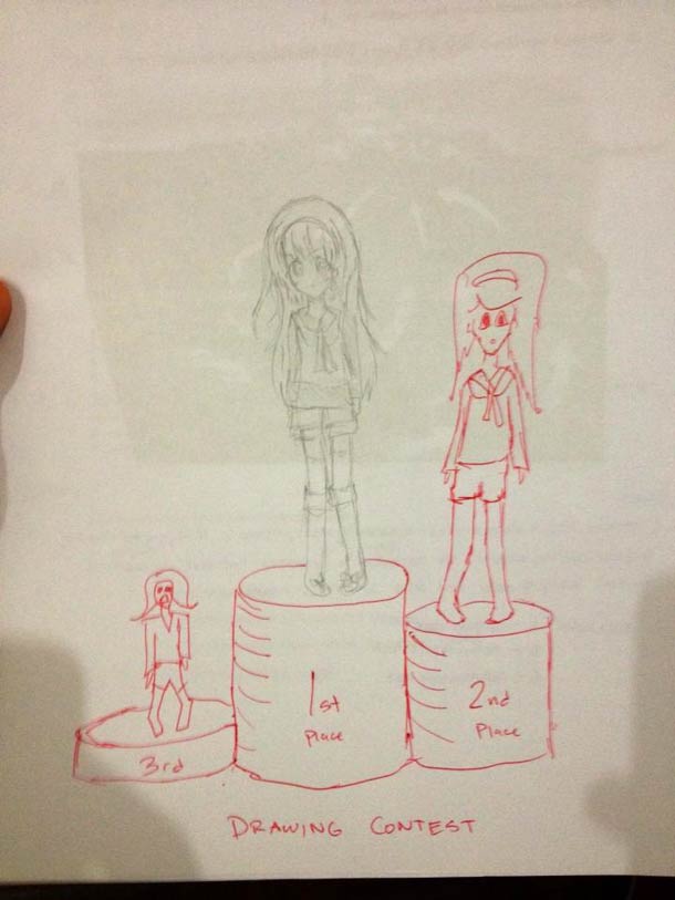 En effet, c’est un professeur de sciences dans une école à Bangkok qui s’est amusé à terminer les dessins faits par ses élèves. Mais au stylo rouge svp ! Façon correction…