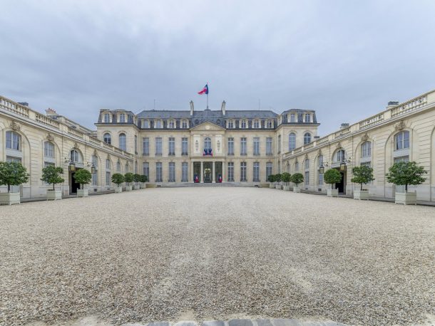 Plus besoin de le présenter, le palais non loin des Champs-Élysées abrite Emmanuel Macron, comme c’est le cas pour tous les présidents depuis 1840. Le palais d’origine princière construit en 1722 comprend de nombreuses pièces où moulures et dorures sont présentes sans modération.