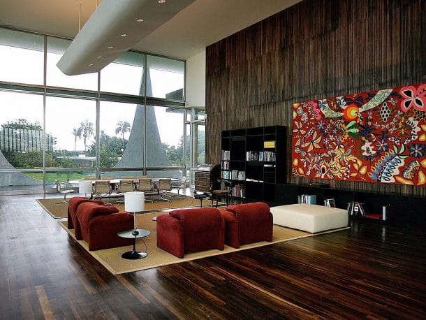 Depuis 1956, le Palácio da Alvorada à Brasilia est la résidence officielle du président. Le bâtiment moderne est très différent de la plupart des résidences présidentielle. Un plan d’eau tout au long du bâtiment permet de refléter les sculptures de l’artiste Alfredo Ceschiatti, qui sont exposées aux abords de la bâtisse. L’intérieur est également décoré avec beaucoup de goûts.