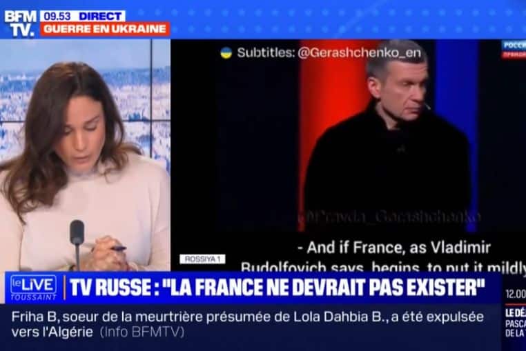 « La France existait, et maintenant, elle n’existe plus, est-ce que ça dérangerait qui que ce soit ? » , a déclaré publiquement le député russe Andrey Gurulyov sur Rossiya-1. « Nous devrions faire une guerre préventive. Macron fournit des tanks, moi je ferais des frappes préventives contre la France en tant que belligérant » , a également lancé son interlocuteur Soloviev, propagandiste en chef du Kremlin.