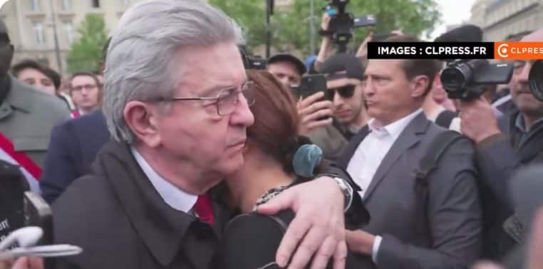 « Monsieur Mélenchon, on ne se sent plus en sécurité, nous, les musulmans ! », l’a-t-elle interpellé. « C’est certain, madame », reconnaît son interlocuteur avant de glisser : « Permettez-moi de vous embrasser ou de vous serrer la main ». Aussitôt dit, aussitôt fait : il enlace la jeune femme qui s’effondre dans ses bras.