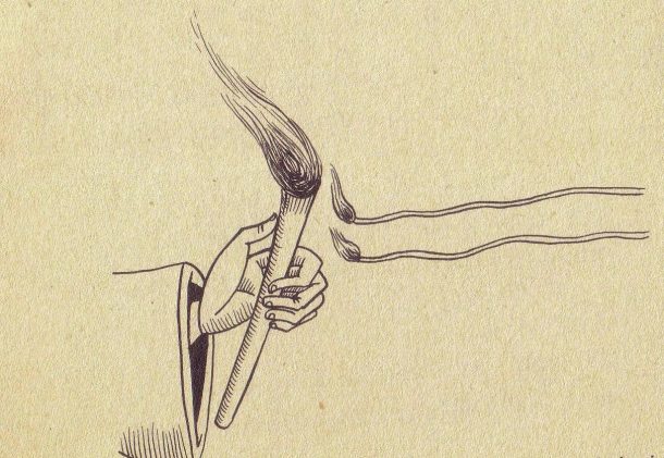 À t=0 minute, j’allume les deux extrémités d’une même mèche et une extrémité de l’autre mèche.
