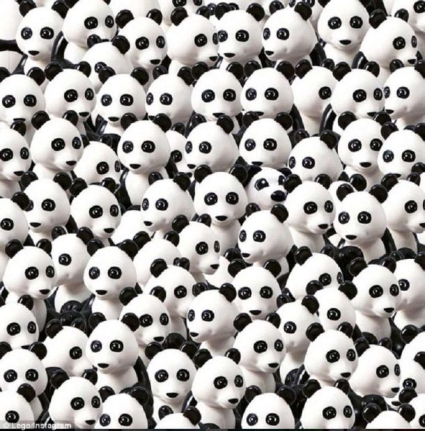 Sur la photo suivante vous allez voir beaucoup beaucoup de pandas mais il y a également un chien caché dans l’image.
