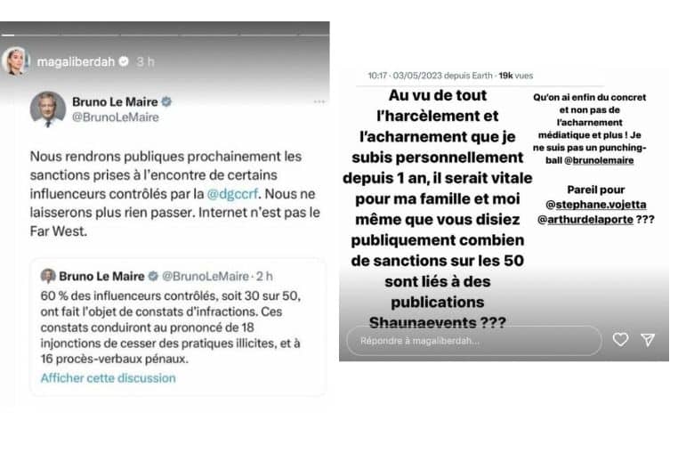 Une prise de parole qui a mis Magali Berdah hors d’elle. « Au vu de tout le harcèlement et l’acharnement que je subis personnellement depuis un an, il serait vital pour ma famille et moi-même que vous disiez publiquement combien de sanctions sur les 50 sont liées à des publications Shauna Events » , a répondu Magali Berdah.