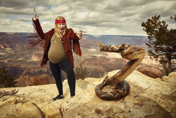 C’est bien connu, être enceinte implique qu’on n’a plus le droit de faire grand-chose. À commencer par ce qu’on a le droit de manger ou de boire. Et bien évidemment, par ce que l’on peut faire ou non. Techniquement, lorsqu’on est (très) en cloque, on évite de se mettre dans des situations dangereuses. Comme faire de la via ferrata ou encore sauter à l’élastique, entre autres. Bref, on oublie tout ce qui touche aux sports extrêmes et autres pratiques physiques trop intenses. La montée d’adrénaline, c’est cool, mais mieux vaut se réserver ça une fois que bébé sera sorti. Du coup, le photographe américain Robby Klein a eu une idée plutôt marrante.