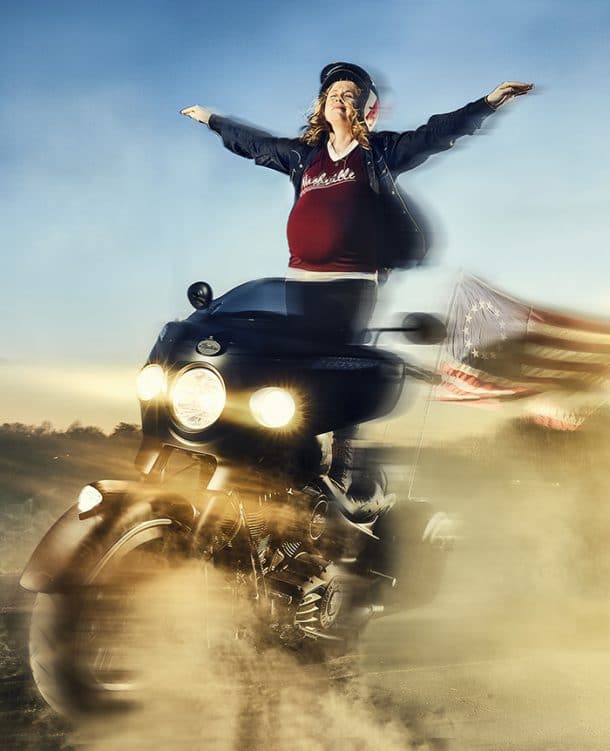 Il a donc mis sa femme dans des situations dans lesquelles vous ne verrez jamais une femme enceinte. On précise bien sûr que tout ça, c’est juste pour le fun. Comme disent les enfants : c’est pour de faux. Alors pas de panique, les photos que vous allez voir sont des montages. Sa femme n’a pas réellement fait tout ça. Quoi qu’il en soit, cette petite série de photos a été prise durant les 10 dernières semaines de grossesse de sa femme. Autant dire qu’elle n’avait pas la condition physique idéale pour pratiquer ces activités « à risque ». Le bébé est d’ailleurs né en bonne santé le 11 avril 2017 et il s’appelle Becket Wylder. Félicitations aux jeunes parents !