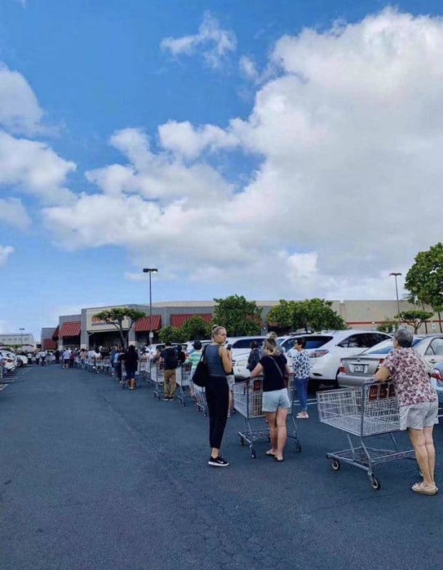Ces personnes font la queue pour pénétrer dans le supermarché