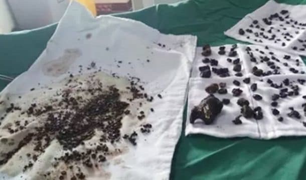 En Chine, ce sont plus de 200 calculs que les médecins de l’hôpital de Guangji ont extrait du corps de Madame Chen, 45 ans. Certaines pierres étaient aussi grosses que des œufs. Il aura fallu six heures et demi à l’équipe pour les retirer une à une. Selon les médecins, ces cailloux se sont formés à cause de son hygiène alimentaire peu saine. Elle se nourrit principalement de restes et ne mange pas de façon régulière, en particulier, elle sautait son petit-déjeuner et certains repas régulièrement.