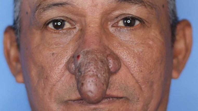 Le rhinophyma est une maladie de la peau qui fait grossir le nez. Le nez des patients atteints de cette pathologie devient rouge ou violacé, bulbeux et veineux. Le nez grossit de façon extrême. L’énorme appendice est très handicapant et provoque des grands complexes. L’excroissance du nez est parfois accompagnée de rougeurs sur les joues et sur le reste du visage. Conrado Estrada, originaire de New York, souffrait depuis des années de rhinophyma et n’osait pas consulter un médecin.