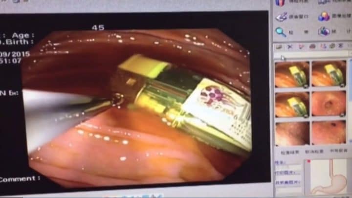 Pourtant, certains le font, ceux qui sont atteints de la maladie de Pica. Et puis, il y en a d’autres qui avalent des objets insolites dans le seul but de faire rire leurs amis. C’est le cas de ce Chinois qui est arrivé à l’hôpital avec un briquet coincé dans l’estomac. Il l’avait avalé suite à un pari avec des amis. Du gaz s’échappaient du briquet et l’homme aurait pu prendre feu à tout moment. Regardez la vidéo pour voir le moment où le briquet a été extirpé de son estomac.
