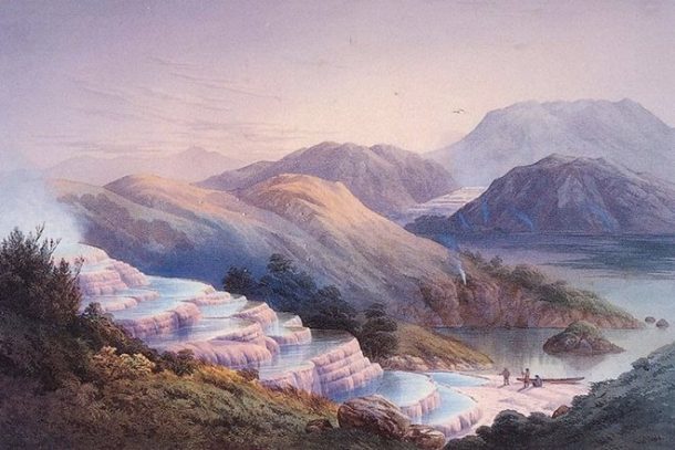 Rex Bunn et Sascha Nolden, deux chercheurs originaires de Nouvelle-Zélande, auraient fait une découverte incroyable. D’après les écrits de Ferdinand von Hochstetter, géologue au XIXème siècle, ils pensent avoir retrouvé la huitième merveille du monde. Celle-ci avait en effet disparu après l’éruption du volcan Tarawera, en Nouvelle-Zélande, le 10 juin 1886. Cette merveille consistait en une cascade de terrasses naturelles de couleur rose. Il s’agissait des terrasses naturelles du lac Rotama. Comme le rapporte Rex Bunn au Guardian, ces terrasses sont devenues une véritable attraction touristique au XIXème siècle. De nombreuses personnes faisaient le voyage (risqué) en bateau depuis l’Europe, le Royaume-Uni et l’Amérique.