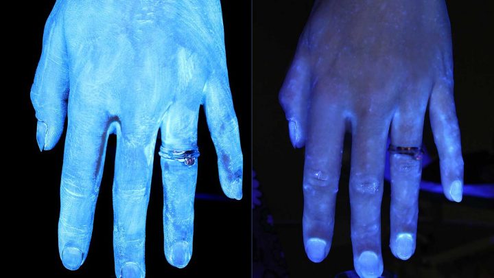 Voici à quoi ressemblent des mains pleines de germes sous une lampe UV