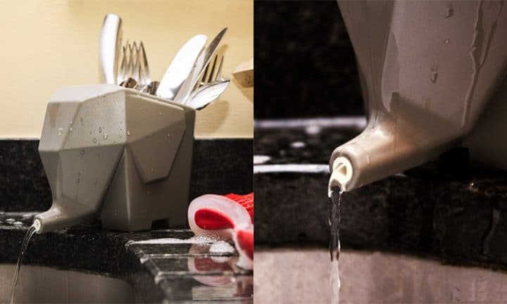 Il sèche tes couverts en évacuant l’eau par sa trompe.