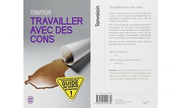 Si l’une de tes nouvelles résolutions 2019 c’est de lire plus, on a trouvé un peu de lecture pour toi : « Apprendre à vivre avec des cons ». Des cons, on en connaît forcément tous. Au boulot, à l’école, ou même dans la famille, ils sont partout. Ce livre, que dis-je, cette bible te sera très utile en cette nouvelle année. L’auteur, Tonvoisin Depalier (on adore l’humour), te propose d’observer « le con d’élevage dans son milieu naturel ». Bref, ce bouquin te promet un bon moment de détente. Et pour ceux qui ont le malheur de bosser avec des cons, il existe aussi un livre à ce sujet. Et oui, Tonvoisin Depalier pense à tout.
