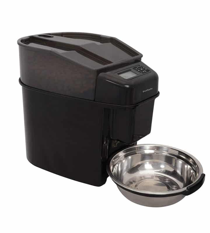 Ce distributeur PetSafe convient aussi bien aux chats qu’aux chiens. En plus de son large récipient qui permet de conserver la saveur des aliments, il y a même une option de distribution lente des portions pour les petites bêtes qui ont tendance à avoir les yeux plus gros que le ventre… Très facile d’utilisation, il vous garantie de partir en vacances sans vous faire de soucis. Grâce au programme de distribution, les repas sont prédéfinis et adaptés en fonction de votre animal (chat ou chien) . Pour les plus gourmands, ce distributeur peut proposer jusqu’à 12 repas par jour.