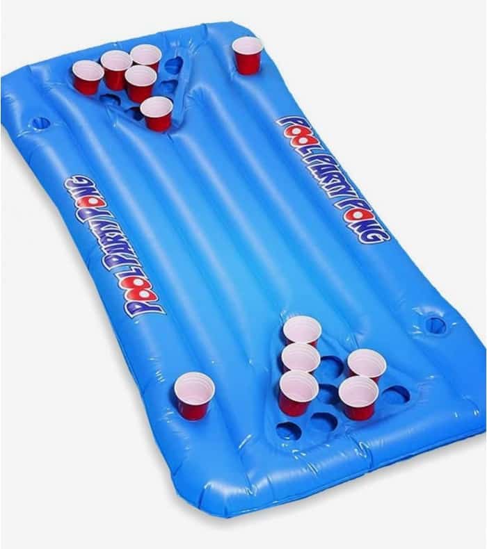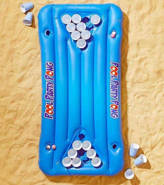 Avec un été qui se veut assez chaud, la piscine ou la mer sont les deux endroits favoris des vacanciers. Pour tous les chanceux qui sont actuellement en vacances et qui possèdent une piscine, on vous a dégoté LA bouée à avoir cet été. Après la bouée pour 7 personnes, on vous dévoile la bouée gonflable de…beer pong ! Très simple d’utilisation et facile à gonfler, cette bouée en forme de table vous permettra de jouer au beer pong avec vos amis en toute sérénité et en toute fraîcheur. Avec une taille de 145 x 60 cm, la bouée est résistante et ne prend pas le risque de faire renverser vos verres plein de bière. Elle est dotée de 20 supports pour mettre vos gobelets (10 de chaque côté). Vous pourrez donc inviter tous vos proches à venir s’amuser dans votre piscine. En plus, la bouée possède quatre trous pour pouvoir poser vos autres boissons au format plus large.