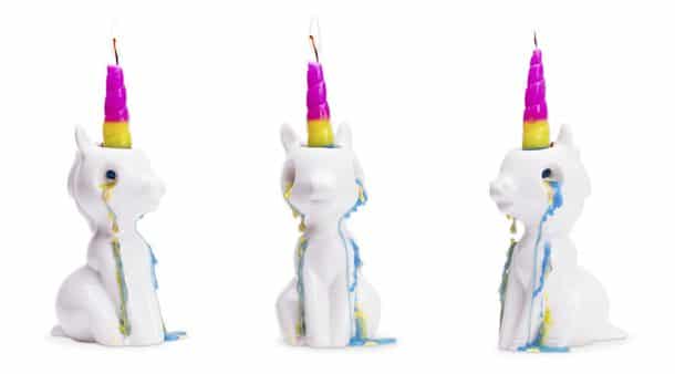 Cette bougie licorne pleure de la cire de toutes les couleurs lorsqu’on l’allume !