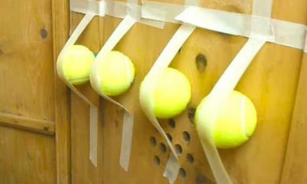 La colle Sugru permet également d’améliorer l’utilisation de certains objets. Bref, quoi que vous décidiez d’en faire, c’est le genre de truc ingénieux qui pourrait apporter une utilité à tout un chacun. Et chacun voit midi à sa porte ! D’ailleurs, Dave Hax a choisi d’en faire une utilisation toute particulière dans une armoire. En effet, il fixe des balles de tennis contre la porte de son armoire (côté intérieur) et la suite, on ne vous la dévoile pas. C’est à vous de découvrir à quoi pourront bien servir ces balles de tennis. Un indice : si vous aimez acheter plein de chaussures, mais que vous ne savez pas où ni comment les ranger, voilà qui devrait vous plaire 😉