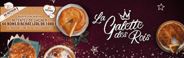 L’opération se déroule du 7 décembre 2023 au 14 janvier 2024 : « Les délicieuses galettes de rois à la frangipane cuites sur place renfermeront 60 fèves gagnantes. Chacune accompagnée d’un bon d’achat d’une valeur de 1000 €« explique l’enseigne. « Lidl transforme la tradition de l’épiphanie en une véritable chasse au trésor. En doublant le nombre de fèves gagnantes cette année. Offrant ainsi une chance encore plus grande de remporter l’un des 60 bons d’achat d’une valeur de 1000 € ».