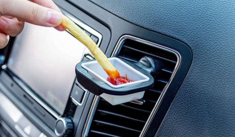 Mangez proprement dans votre voiture grâce à ce porte-sauce