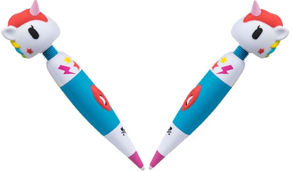 Issu d’une collaboration entre Tokidoki, une marque de vêtements orientée kawaii et pop culture, et Lovehoney, une marque d’accessoires intimes, le résultat est tout à fait surprenant ! Décrit comme étant « multivitesse et ultrapuissant », vous pourrez l’utiliser avec ou sans son capuchon licorne (c’est la corne de celui-ci qui fait office de stimulateur clitoridien) sans lequel il rappelle les vibromasseurs de type « baguette magique ».