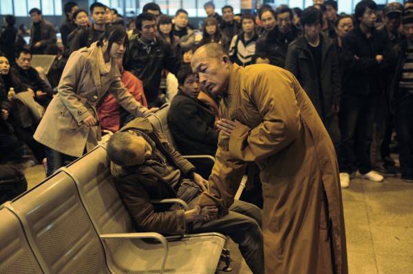 Un moine prie pour un vieil homme qui venait de mourir en Chine.