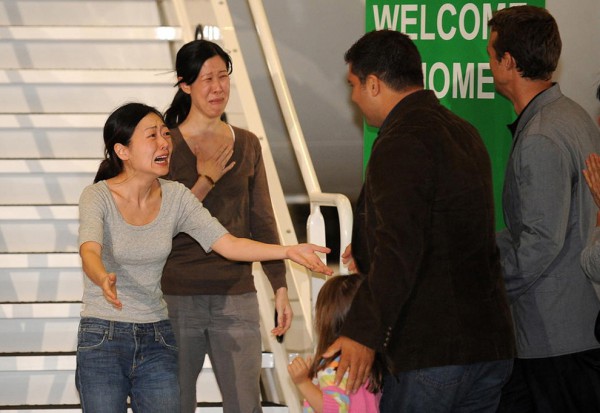 Les journalistes Euna Lee et Laura Ling, qui avaient été arrêtées en Corée du Nord et condamnées à 12 ans de travail forcé, retrouvent leurs familles.