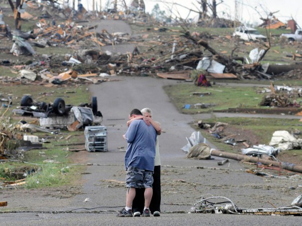 Une mère console son fils à Concorde, en Alabama, après que leur maison ait été emportée dans une tornade en avril 2011.