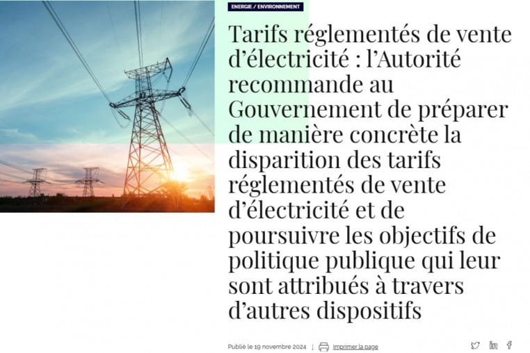 Et, ce 19 novembre 2024, la Commission de régulation de l’énergie a publié un rapport qui traite justement des tarifs réglementés de vente de l’électricité.