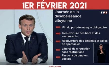 On pouvait par exemple lire sur Twitter : « En effet, là c’est plus possible. Oui les hôpitaux sont blindés et c’est pas d’aujourd’hui. Oui à la liberté non à la dictature » , « Alors avons nous le courage de dire : je veux ma liberté de vivre ? » . Avec ces messages, on retrouvait un montage d’une allocution du Président avec inscrit « journée de la désobéissance citoyenne » . Au premier février, il faut d’après ce montage « la fin du port du masque obligatoire, la réouverture des restaurants, bars et salles de spectacles, la liberté de circulation sans restrictions et la fin de la distanciation sociale » .