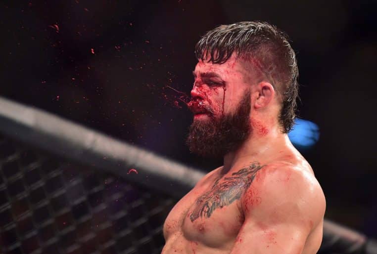 Le nez de Mike Perry est cassé et saigne abondamment. Malgré son visage sacrément amoché, il n’abandonne pas et le combat se termine à la décision.